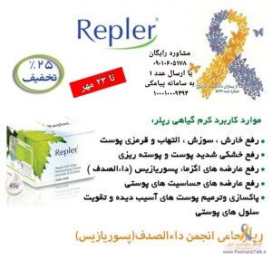 🔹طی صحبتهای انجام شده توسط هیات مدیره انجمن حمایت از بیماران داءالصدف ایرانیان (کدثبت ۵۷۹۶) با مدیریت محترم شرکت رپلر از ۸ تا ۲۳ مهرماه ۱۳۹۹ بمدت پانزده روز فروش چهار محصول تخصصی شرکت فوق برای اعضاء با ۲۵% تخفیف انجام خواهد شد