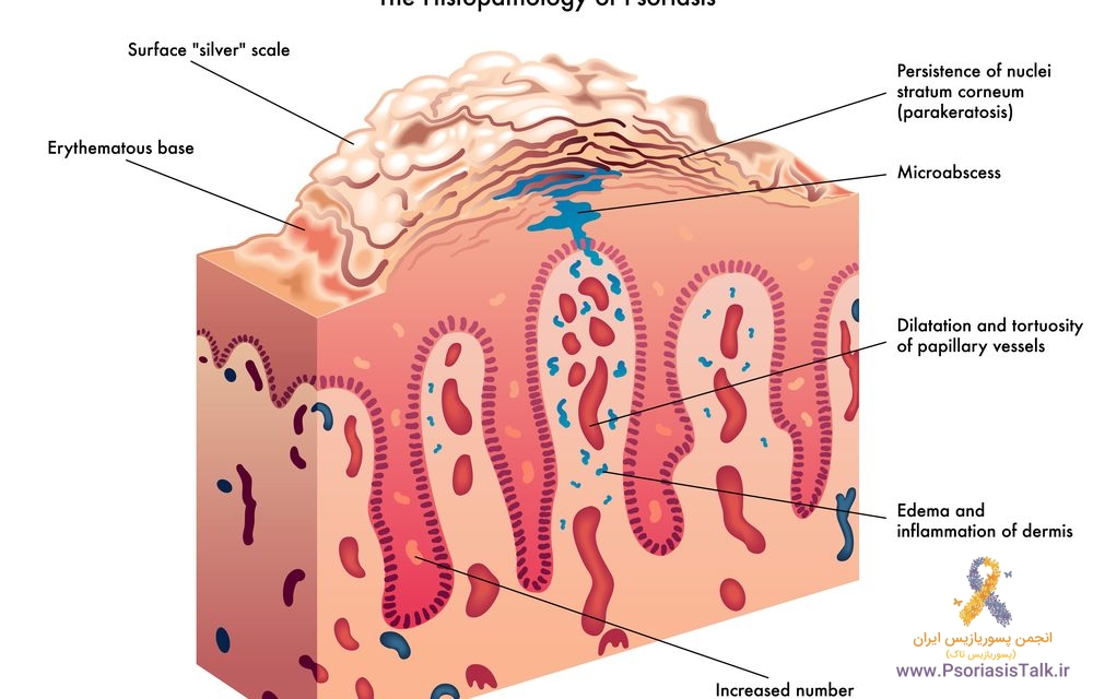 امروزه مشخص شده است كه پسوريازيس يك بيماري مرتبط با سيستم ايمني بدن است. در طي اين بيماري سيستم ايمني با ارسال سيگنال هاي معيوب موجب تسريع رشد سلول هاي پوست مي شود. در واقع در حالت عادي سلول هاي پوست بطور دائم از لايه هاي زيرين به طرف سطح حركت كرده، در آنجا هسته هاي خود را از دست داده و بصورت پوسته هاي مرده از بدن دفع مي شوند. اين روند بطور معمول حدود يك ماه به طول مي انجامد، اما در جريان پسوريازيس، چرخه حيات سلول هاي پوست بر اثر همان اشكالات سيستم ايمني، سرعت يافته، در نتيجه چندين لايه سلول مرده در سطح پوست تجمع پيدا مي كنند كه همان پوسته هاي پسوريازيس را تشكيل مي دهند.